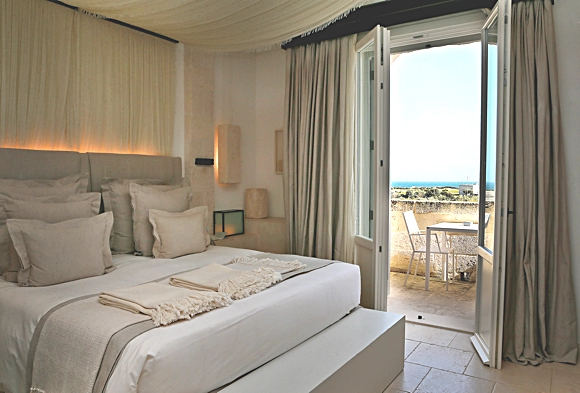 La Egnazia – die schönste mit 125 qm Fläche, mit zwei getrennten Wohnbereichen, ein Schlafzimmer mit großem Bad. Im Außenbereich bietet es einen kleinen Pool im Privatgarten. Ideal für intime Aufenthalte sowie Flitterwochen.