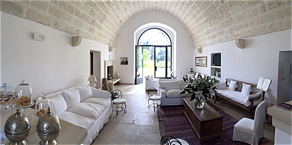 Restaurant mit typisch salentinischer Küche, Bar mit Bibliothek und Leseraum, Pool im Innnenhof.