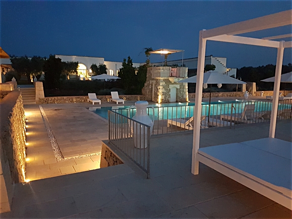 Die stets um Qualität bemühte Leitung dieses einladenden Agri-Resorts bietet ihren Gästen einen tadellosen Service und zu jeder Jahreszeit wunderschöne Ecken zum Entspannen am abgeschiedenen Pool, zu dem man über den Hof gelangt, oder aber im Kaminzimmer, in dem man sich an kälteren Abenden erwärmen kann. Unsere Gäste werden in der Hall mit Tonnengewölbe und Kamin aus Gestein aus Lecce empfangen, um auch in den weniger warmen Monaten die Gemüter zu erwärmen.